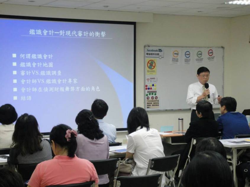 此次月例會在2014年6月30號於電腦稽核協會訓練教室舉辦,並由電腦稽核協會理事長林宜隆教授進行開場,並邀請到財團法人會計研究發展基金會秘書長陳伯松會計師進行【鑑識會計-對現代審計的衝擊】之演講,先是介紹何謂鑑識會計以及何謂舞弊,先讓學員了解基本的概念後,繼續講解何謂會計犯罪以及何謂財報舞弊